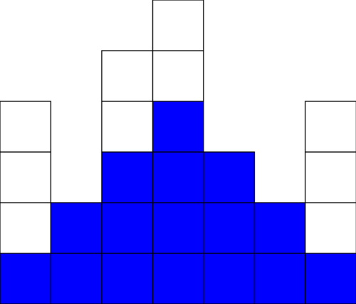 Uma peça de mármore pode ser representada como uma série de colunas com alturas variadas. Observando essas peças, você percebeu que ainda é possível esculpir um triângulo, aproveitando ao máximo o material disponível. Abaixo está um exemplo de uma peça de mármore e do maior triângulo que pode ser extraído dela: